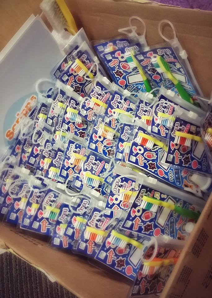 For those who want to participate but are not visiting our office during this time, you can write a Facebook review and we will also give your child a travel oral health kit and donate one kit.
